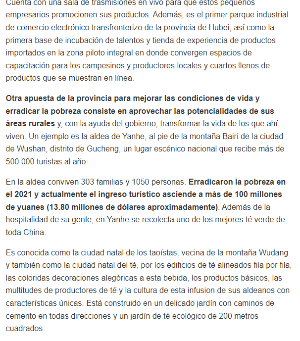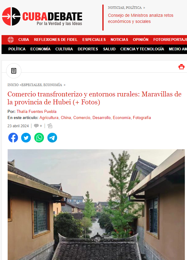 古巴记者塔利亚·富恩特斯在古巴最大的网络媒体“古巴辩论网”发表报道《跨境贸易与湖北乡村的奇迹》,报道称:“这样一个小山村能取得如今的成就,让我很震撼。在中国有机谷跨境电商产业园,他们把如此先进的技术和优质的平台整合在一起,使农民和生产者可以通过直播推广他们的商品,使产品远销全国和世界各地。”