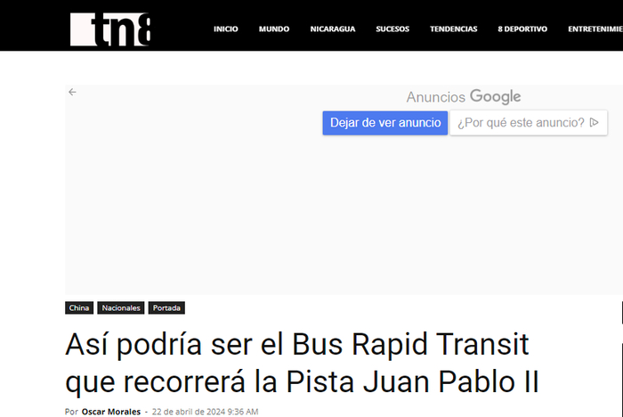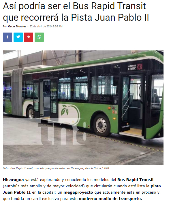 尼加拉瓜电视台8台官方网站也刊发了相关报道,报道中提到:“尼加拉瓜驻华大使在参观完襄阳腾龙汽车有限公司后,亲身感受到了中国新质生产力的发展速度,并表示在未来几个月内,尼加拉瓜将完成2000辆中国电动公交车的采购,彻底改变尼加拉瓜的城市交通系统。”本则报道还登上尼加拉瓜当天的热点新闻。