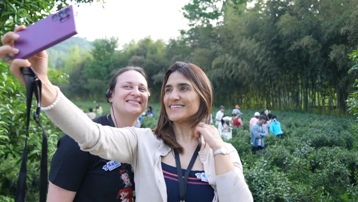 记者们一边品茶采茶,一边了解堰河村发展历史。在与村民的交谈中得知,眼前这个美丽乡村,通过发展种植茶叶等因地制宜的农副产业脱贫致富。拉美记者们饶有兴致,纷纷用镜头记录下这里美丽而又励志的故事。