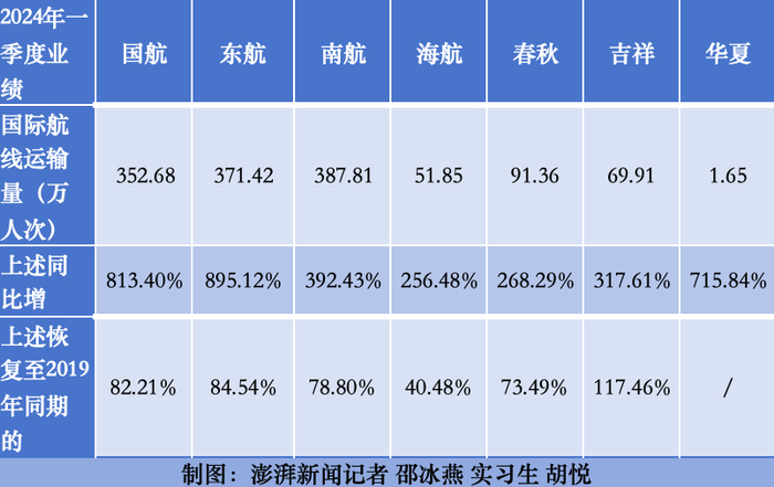 一季度多家航司国际航线运输量倍增恢复