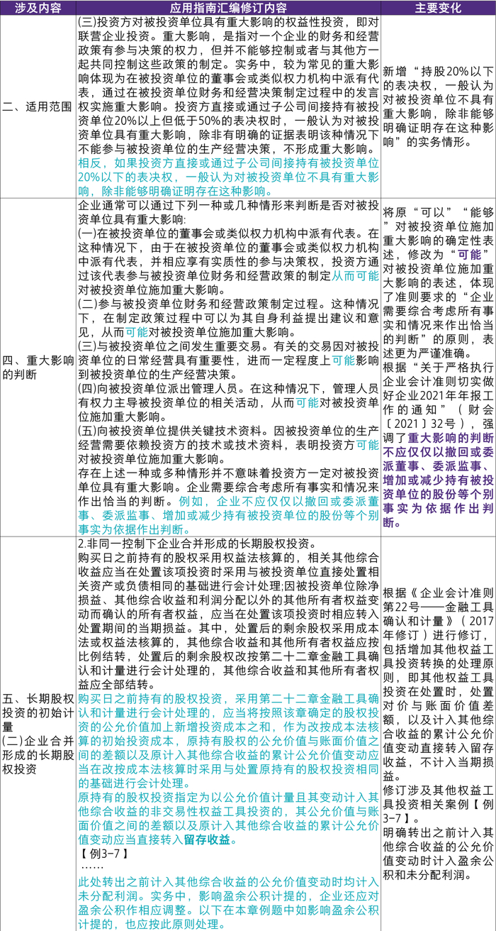《企业会计准则应用指南汇编2024》长期股权投资章节主要变化