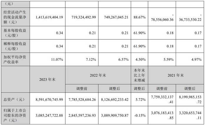 报告期内经营活动产生的现金流量净额为1,413,619,404.19元,归属于上市公司股东的净资产3,085,247,722.88元。