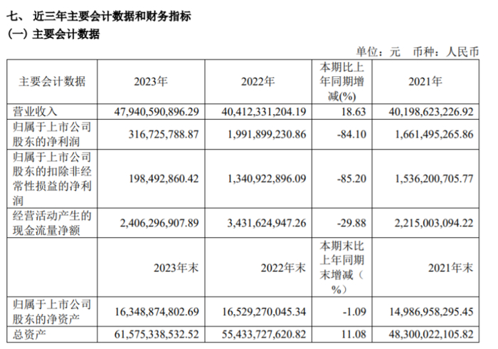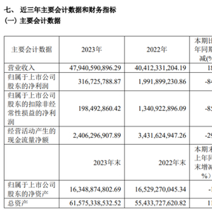 挖贝网4月30日,金发科技 近日发布2023年度报告,报告期内公司实现营业收入47,940,590,896.29元,同比增长18.63%;归属于上市公司股东的净利润316,725,788.87元,同比减少84.10%。