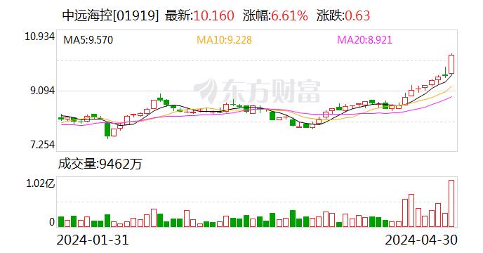 数据显示,一季度中远海控主要经营指标均有所改善,其中实现营业收入482.70亿元,同比增长1.94%;归属于上市公司股东的净利润为67.55亿元,环比增长277.6%。