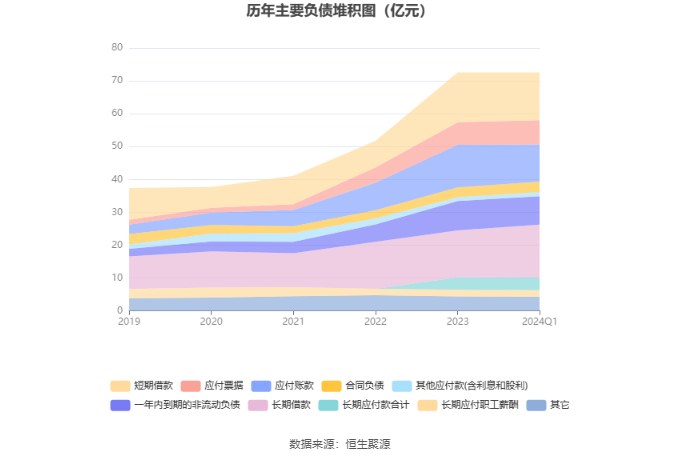 负债重大变化方面,截至2024年一季度末,公司长期借款较上年末增加12.92%,占公司总资产比重上升1.85个百分点;应付账款较上年末减少12.83%,占公司总资产比重下降1.64个百分点;短期借款较上年末减少3.61%,占公司总资产比重下降0.53个百分点;应付票据较上年末增加6.46%,占公司总资产比重上升0.45个百分点。