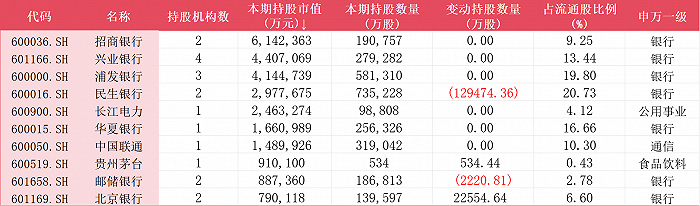 持仓市值方面,险资重仓市值前十个股行业属性进一步向高股息的银行靠拢,银行股较上季度增加1位,北京银行(601169.SH)挺进第十。