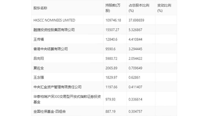 一季报显示,2024年一季度末公司十大流通股东中,新进股东为华泰柏瑞沪深300交易型开放式指数证券投资基金、全国社保基金-四组合,取代了上年末的中信里昂资产管理有限公司-客户资金-人民币资金汇入、全国社保基金一一四组合。在具体持股比例上,HKSCC NOMINEES LIMITED、融捷投资控股集团有限公司持股有所上升,香港中央结算有限公司持股有所下降。