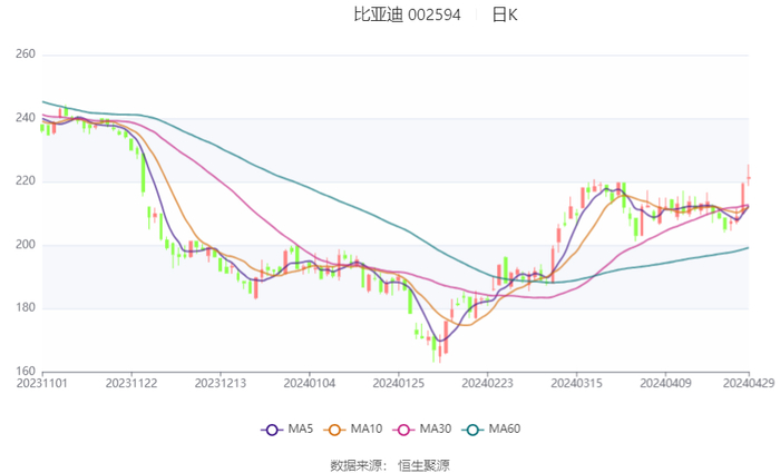 比亚迪:2024年第一季度净利润45.69亿元 同比增长10.62%