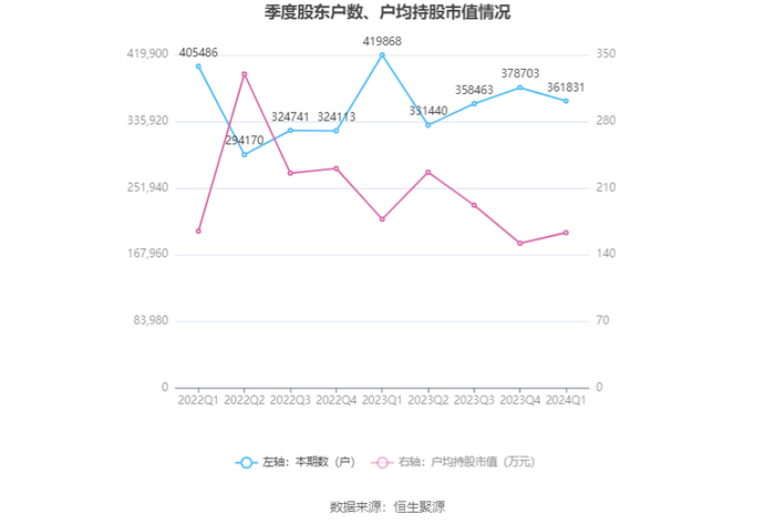 筹码集中度方面,截至2024年一季度末,公司股东总户数为36.18万户,较上年末下降了1.69万户,降幅4.46%;户均持股市值由上年末的152.16万元上升至163.33万元,增幅为7.34%。