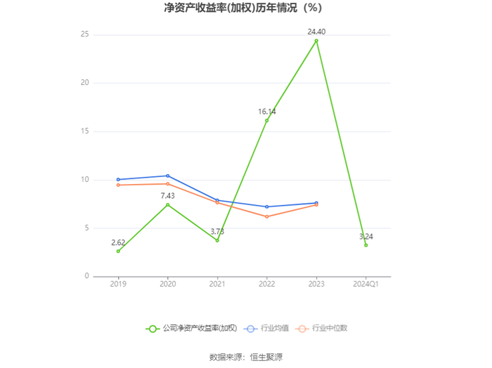 数据显示,2024年第一季度公司加权平均净资产收益率为3.24%,较上年同期下降0.41个百分点;公司2024年第一季度投入资本回报率为2.36%,较上年同期下降0.36个百分点。