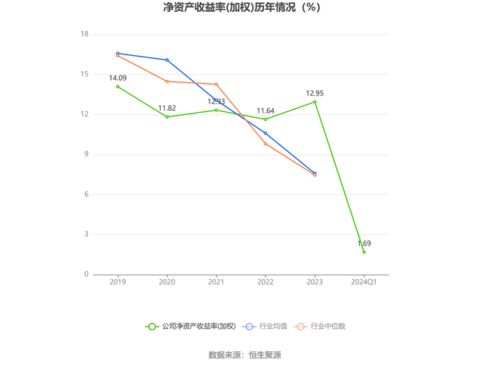 数据显示,2024年第一季度公司加权平均净资产收益率为1.69%,较上年同期下降0.72个百分点;公司2024年第一季度投入资本回报率为1.59%,较上年同期下降0.43个百分点。