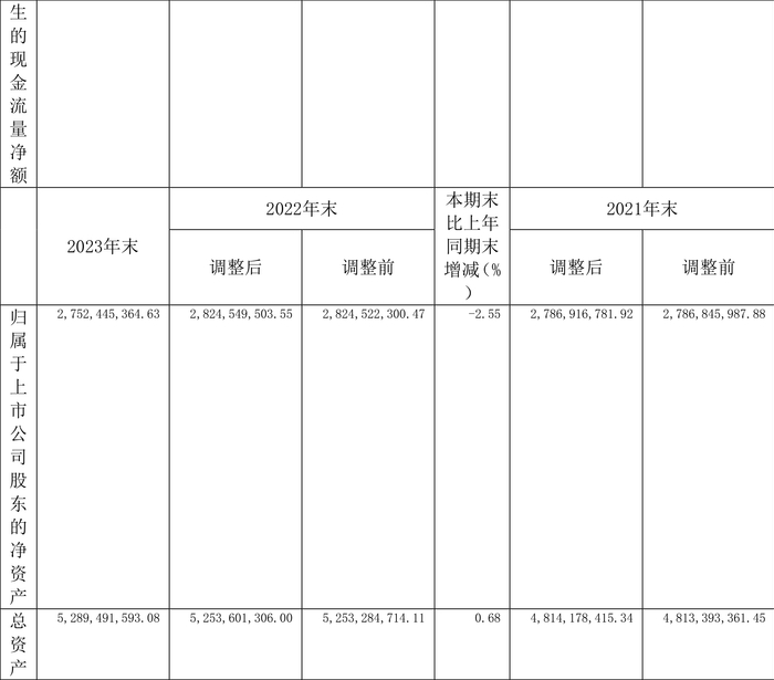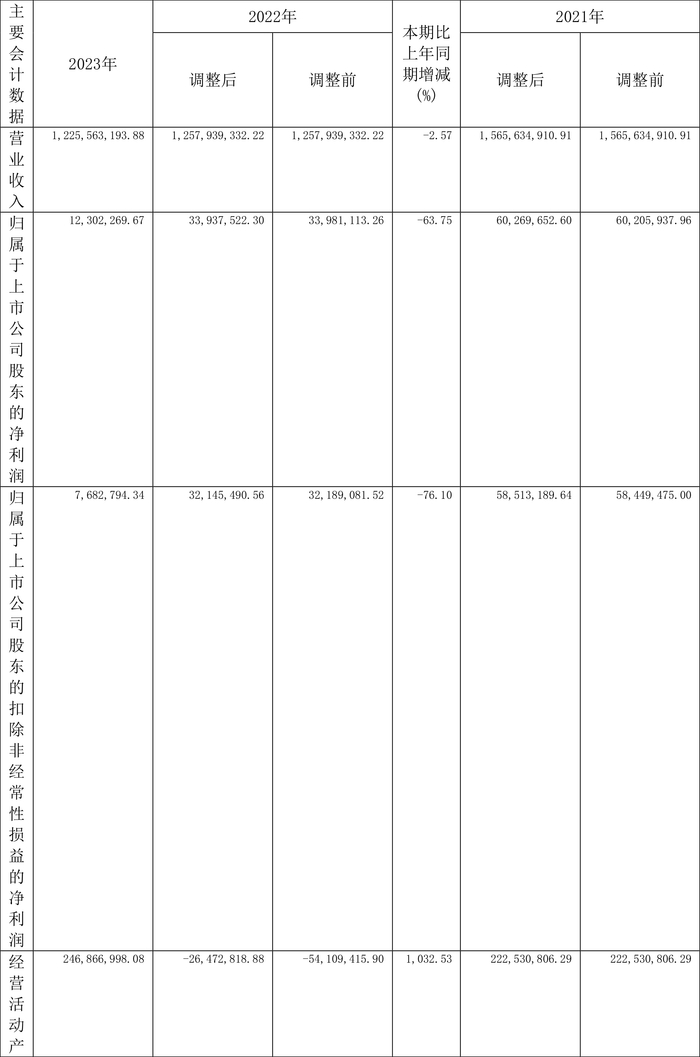 2023年,公司经营活动现金流净额为2.47亿元,同比增加2.73亿元;筹资活动现金流净额-1.76亿元,同比减少4.69亿元;投资活动现金流净额-2226.46万元,上年同期为-1943.63万元。
