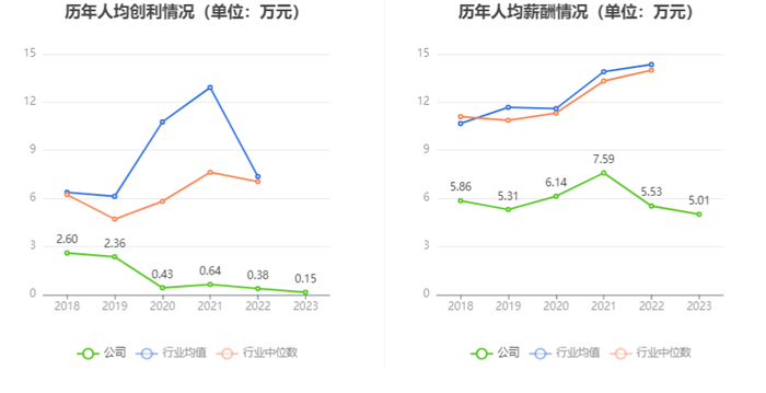 截至2023年末,公司员工总数为8284人,人均创收14.79万元,人均创利0.15万元,人均薪酬5.01万元,较上年同期分别变化6.02%、-60.55%、-9.40%。
