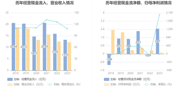 2023年,公司营业收入现金比为108.95%,净现比为2006.68%。