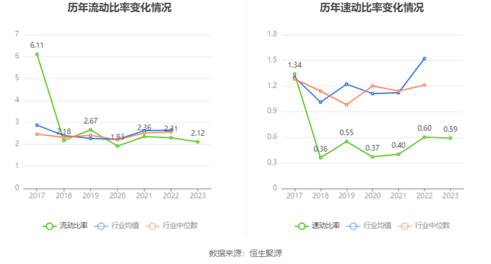 2023年,公司流动比率为2.12,速动比率为0.59。