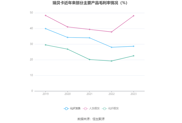 分产品看,化纤发条、人发假发、化纤假发2023年毛利率分别为28.67%、48.14%、22.58%。