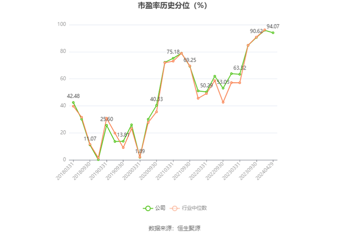 市盈率为负时,不显示当期分位数,会导致折线图中断。