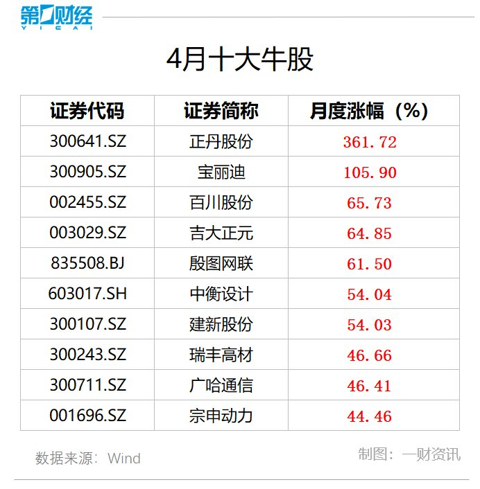 4月十大牛股出炉:正丹股份超361%涨幅问鼎榜首