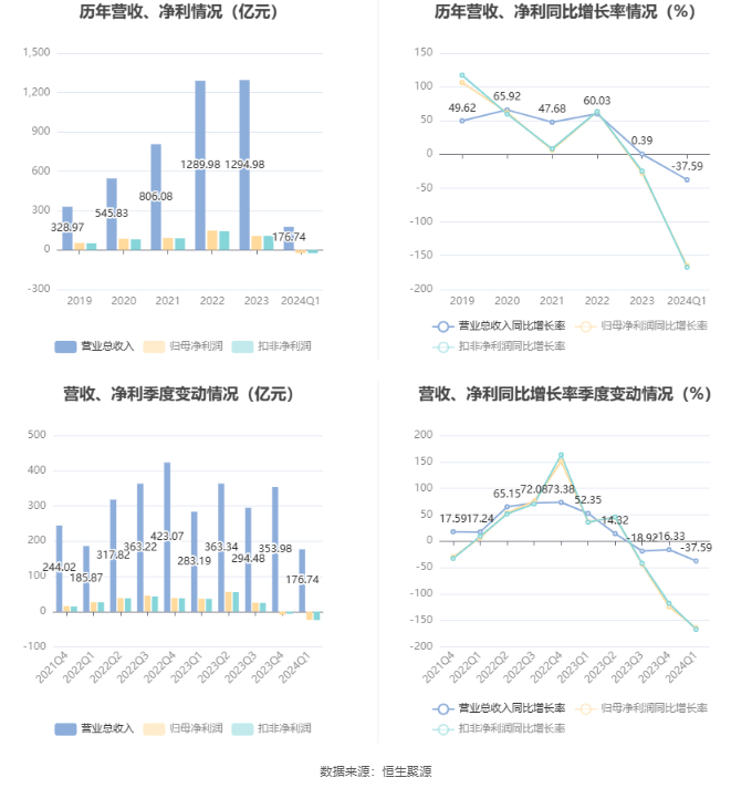 隆基绿能:2024年第一季度亏损23.50亿元