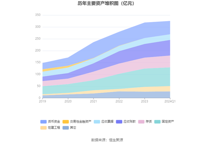 资产重大变化方面,截至2024年一季度末,公司货币资金较上年末减少14.08%,占公司总资产比重下降3.28个百分点;应收账款较上年末增加14.39%,占公司总资产比重上升2.17个百分点;存货较上年末增加8.23%,占公司总资产比重上升0.86个百分点;在建工程较上年末增加11.43%,占公司总资产比重上升0.58个百分点。