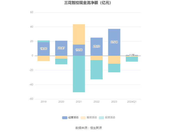 2024年第一季度,公司经营活动现金流净额为1.08亿元,同比下降85.35%;筹资活动现金流净额-1.37亿元,同比减少1.55亿元;投资活动现金流净额-6.72亿元,上年同期为-3.92亿元。