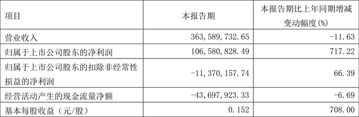 2024年第一季度,公司经营活动现金流净额为-4369.79万元,同比减少273.87万元;筹资活动现金流净额927.41万元,同比增加5275.96万元;投资活动现金流净额7330.83万元,上年同期为2.32亿元。
