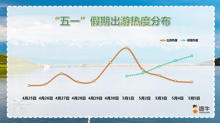 途牛方面表示,今年“五一”假期第一波出游高峰在4月27日出现,部分游客选择了“请3休9”的拼假策略,即4月28日至30日请假或调休,以此获得4月28日至5月5日连休9天的超长假期。“五一”假期出游高峰主要集中在4月30日至5月3日期间,出游峰值和返程峰值预计分别在5月1日和5月5日出现。热门客源地方面,上海、北京、南京、天津、苏州、广州、杭州、深圳、沈阳、厦门等地游客出游意愿更为强烈。2天和5天的行程安排最受欢迎,出游人次占比分别为27%和23%。同时,有近17%的游客选择5天以上的出游行程,并且他们更倾向于假期前出发,以避开出游高峰。