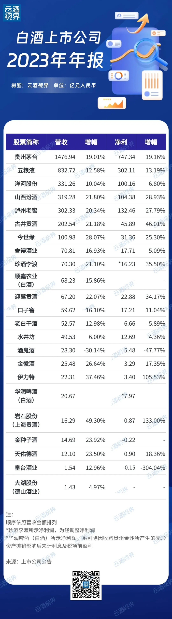 值得关注的是,贵州茅台、五粮液、洋河股份、山西汾酒、泸州老窖五家企业营收规模达到300亿以上,净利润均超过百亿。