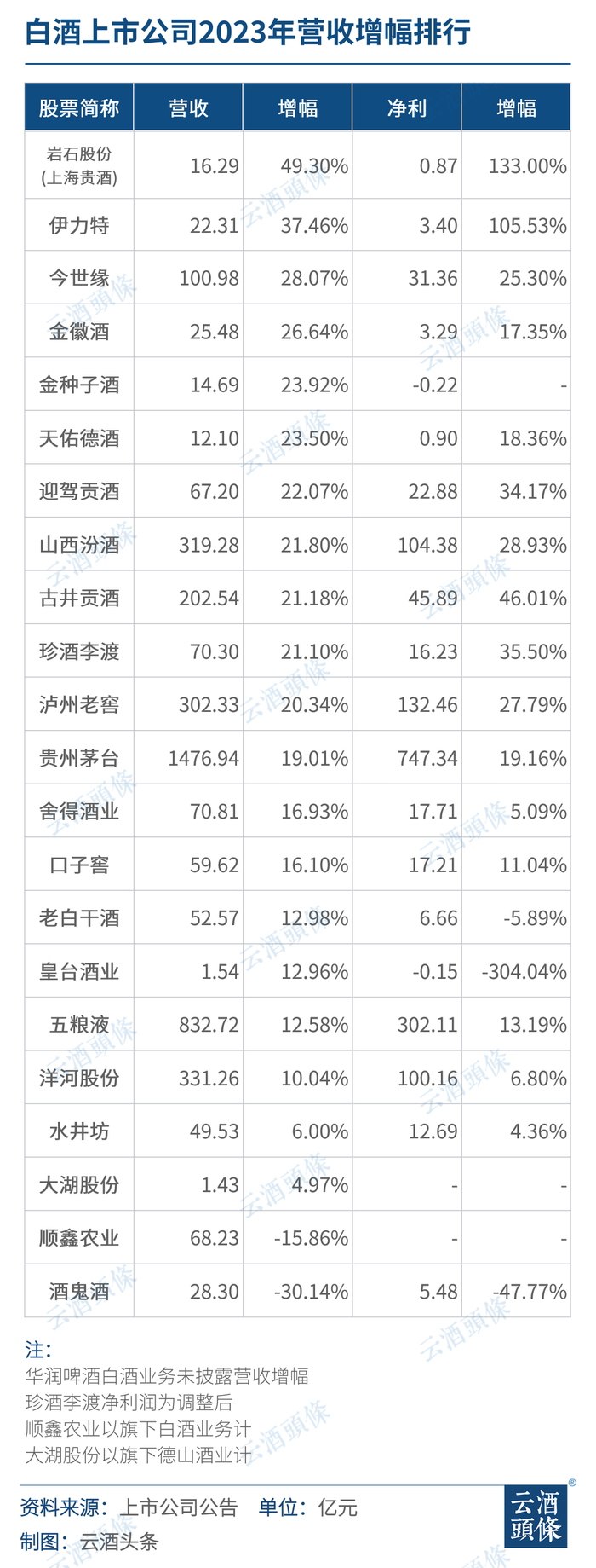 此外,贵州茅台、五粮液、山西汾酒等13家企业实现营收、净利润双位数增长,头部酒企利润增速更是大多高于营收增速。