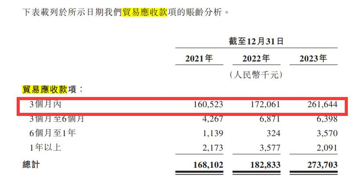 由于与聚合平台合作,曹操出行贸易应收款项从2021年的1.6亿元,增长至2023年的2.66亿元,且3个月以内的账龄高达2.61亿元。其中,贸易应收款为聚合平台的应付未偿款项。