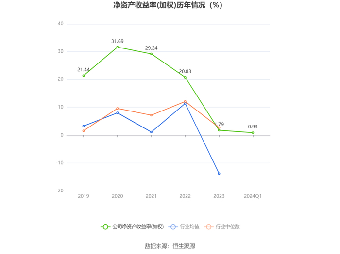 数据显示,2024年第一季度公司加权平均净资产收益率为0.93%,较上年同期下降0.32个百分点;公司2024年第一季度投入资本回报率为0.68%,较上年同期下降0.47个百分点。