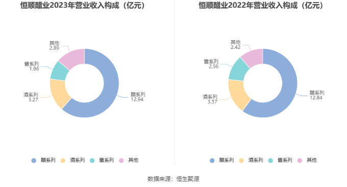 分产品来看,2023年公司主营业务中,醋系列收入12.94亿元,同比增长0.79%,占营业收入的61.43%;酒系列收入3.27亿元,同比下降8.39%,占营业收入的15.52%;酱系列收入1.96亿元,同比下降23.57%,占营业收入的9.30%。