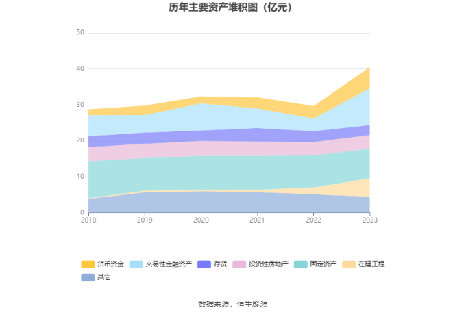资产重大变化方面,截至2023年年末,公司交易性金融资产较上年末增加191.65%,占公司总资产比重上升13.48个百分点;固定资产较上年末减少7.46%,占公司总资产比重下降9.66个百分点;在建工程较上年末增加176.19%,占公司总资产比重上升6.49个百分点;投资性房地产较上年末减少0.39%,占公司总资产比重下降3.42个百分点。
