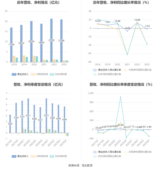 恒顺醋业:2023年净利润同比下降37.03% 拟10派0.7元