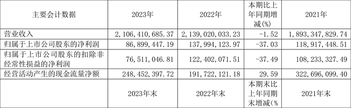 2023年,公司经营活动现金流净额为2.48亿元,同比增长29.59%;筹资活动现金流净额9.66亿元,同比增加12.41亿元;投资活动现金流净额-9.79亿元,上年同期为1.19亿元。