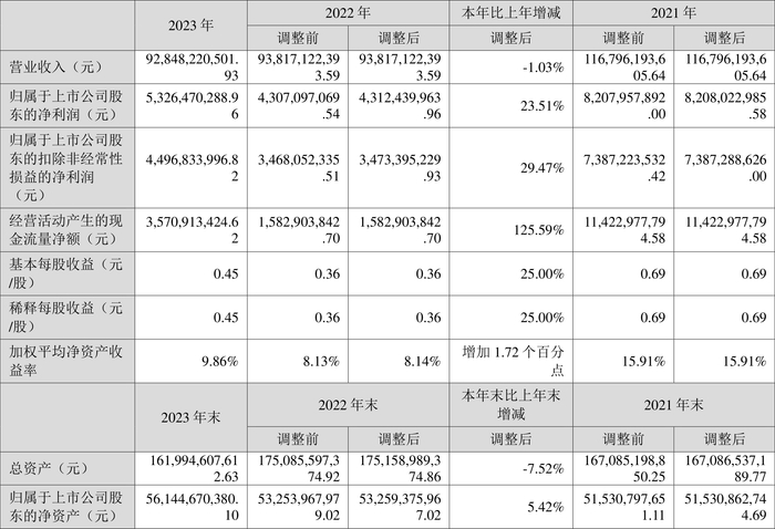 数据显示,2023年公司加权平均净资产收益率为9.86%,较上年同期增长1.72个百分点;公司2023年投入资本回报率为6.09%,较上年同期增长0.97个百分点。