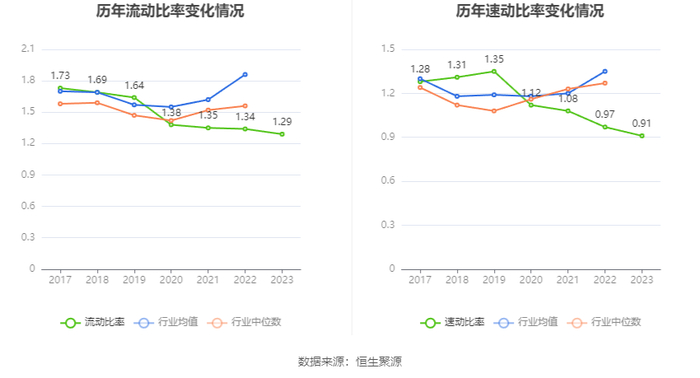 2023年,公司流动比率为1.29,速动比率为0.91。