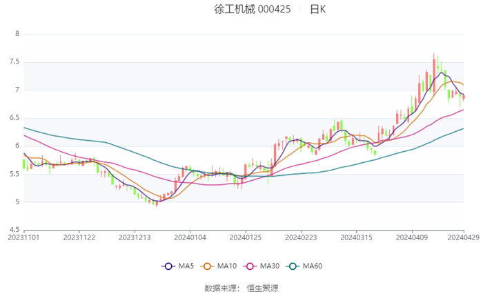 以4月29日收盘价计算,徐工机械目前市盈率(TTM)约为15.33倍,市净率(LF)约为1.45倍,市销率(TTM)约为0.88倍。
