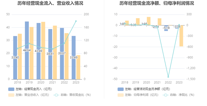进一步统计发现,2023年公司自由现金流为-16.94亿元,上年同期为-3.54亿元。