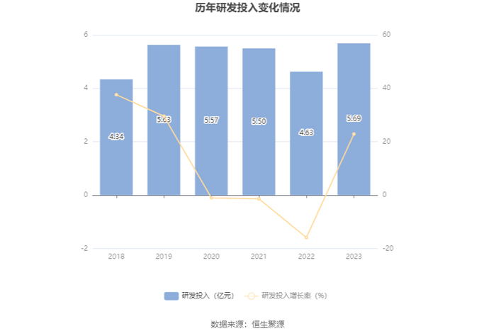 2023年全年,公司研发投入金额为5.69亿元,同比增长22.93%;研发投入占营业收入比例为30.54%,相比上年同期上升17.56个百分点。此外,公司全年研发投入资本化率为7.13%。