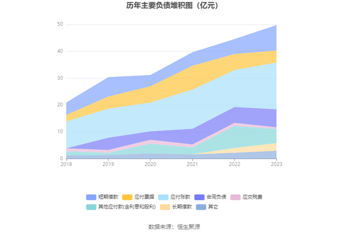 负债重大变化方面,截至2023年年末,公司短期借款较上年末增加69.39%,占公司总资产比重上升3.54个百分点;应付账款较上年末增加26.27%,占公司总资产比重上升4.08个百分点;其他应付款(含利息和股利)较上年末减少35.42%,占公司总资产比重下降1.50个百分点;应付票据较上年末减少23.54%,占公司总资产比重下降0.53个百分点。