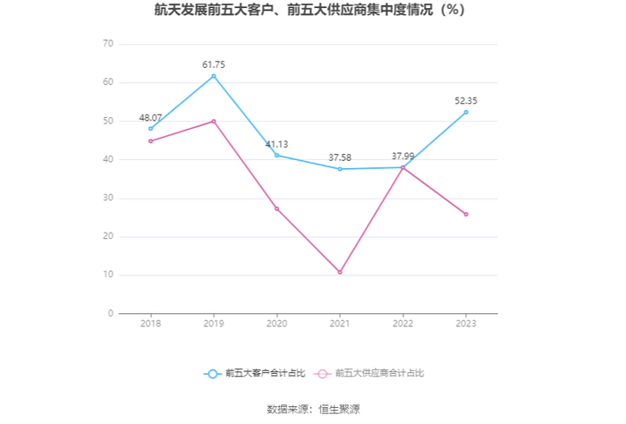 报告期内,公司前五大客户合计销售金额9.75亿元,占总销售金额比例为52.35%,公司前五名供应商合计采购金额6.58亿元,占年度采购总额比例为25.82%。