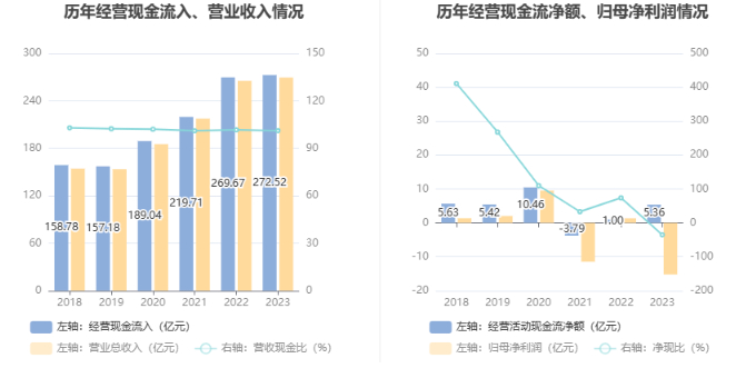 2023年,公司营业收入现金比为101.12%,净现比为-35.10%。