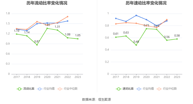 2023年,公司流动比率为1.05,速动比率为0.58。
