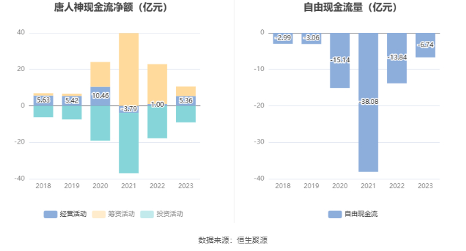 进一步统计发现,2023年公司自由现金流为-6.74亿元,上年同期为-13.84亿元。