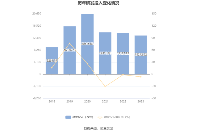 2023年全年,公司研发投入金额为1.32亿元,同比下降6.33%;研发投入占营业收入比例为0.49%,相比上年同期下降0.04个百分点。此外,公司全年研发投入资本化率为0。