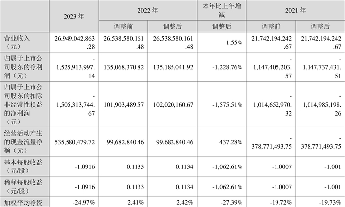 数据显示,2023年公司加权平均净资产收益率为-24.97%,较上年同期下降27.39个百分点;公司2023年投入资本回报率为-9.70%,较上年同期下降12.51个百分点。