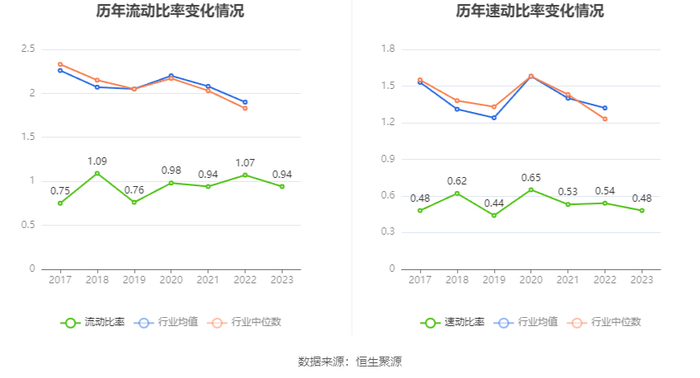 2023年,公司流动比率为0.94,速动比率为0.48。