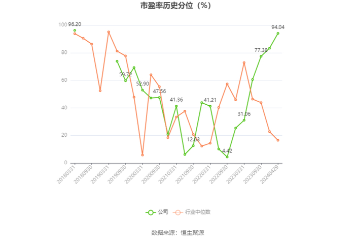 市盈率为负时,不显示当期分位数,会导致折线图中断。
