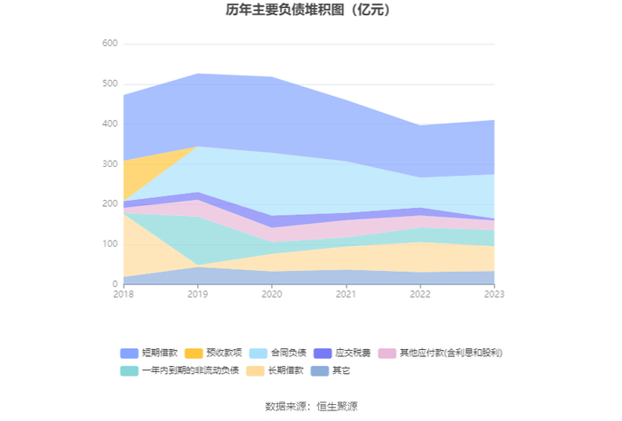负债重大变化方面,截至2023年年末,公司合同负债较上年末增加47.27%,占公司总资产比重上升4.04个百分点;应交税费较上年末减少74.82%,占公司总资产比重下降1.97个百分点;长期借款较上年末减少16.81%,占公司总资产比重下降1.89个百分点;其他应付款(含利息和股利)较上年末减少22.19%,占公司总资产比重下降0.97个百分点。